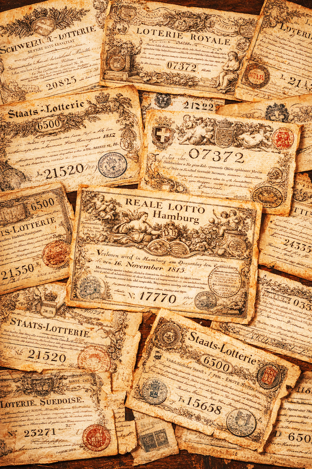 Still not quite lottery tickets, though. We need the invention of the printing press (circa 1540 AD) for that to happen. England’s 1569 lottery — authorized by Queen Elizabeth I — issued printed tickets that promised prizes ranging from cash to silver plate.