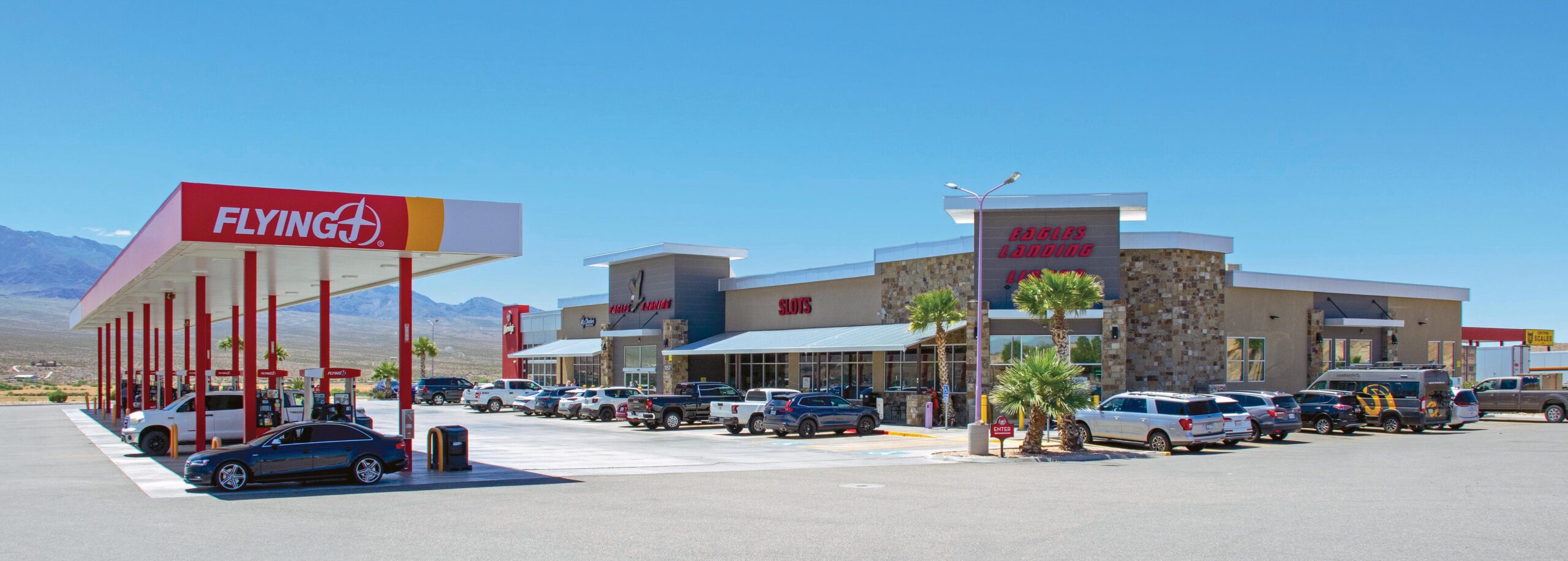 As Eagles Landing built and acquired stores in the decades that followed, they looked for sites that, like their inaugural operation, were right off main thoroughfares and interstate highways (today that includes I-70 and I-80, in addition to I-15). These locations tended to be a considerable distance from major commercial centers, with plenty of land available to shape into self-contained “destination” hubs for commercial and recreational travelers.
